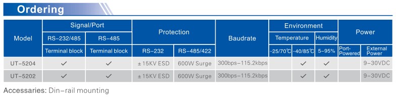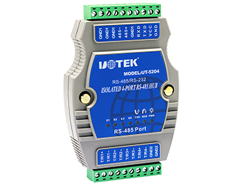 UT-5204 is a hub special designed for RS-485 BUS under complicated electromagnetic field. The transmission rate for this hub is as high as 115.2KBPS. To ensure the safety and reliability of the data communication, RS-485 port adopts optoelectronic isolation technology to prevent from lightning and surge; the built-in optoelectronic isolator and 600W surge protection circuit can provide 2,500V isolated voltage for lightning and ESD protection. Meanwhile, it adopts external switch power, prevents from common ground interference; it is quite good for outdoor application.