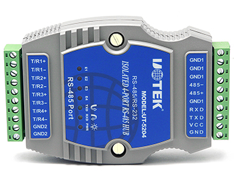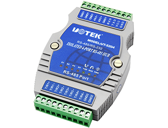 UT-5204 RS-485 HUB supports star RS-485 BUS connection. Each port supports short-circuit, open-circuit protection, 2,500V optoelectronic isolation. User can easily change the structure of RS-485 BUS, divide the network segment, and improve the communication reliability. When the device break down, the network segment with problem will be isolated, so as to ensure other network segment working smooth; this performance greatly improve the reliability of RS-485, and shorten the maintenance time of the network.