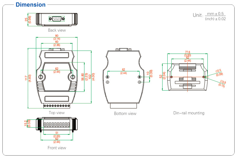 ● Isolation: isolated voltage 2,500VRMS 500VDC