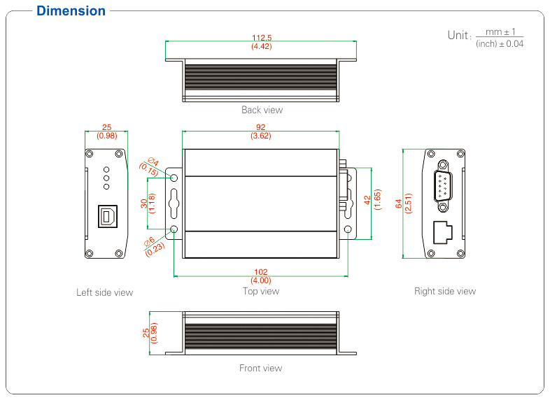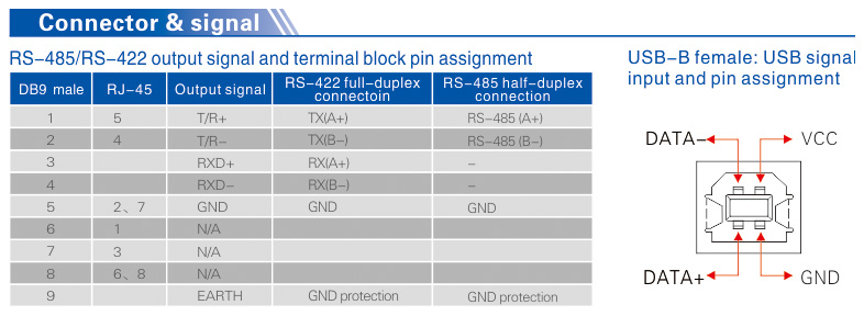 ● Transmission distance: RS-485/422: 5000m(9600bps), USB: no more than 5m