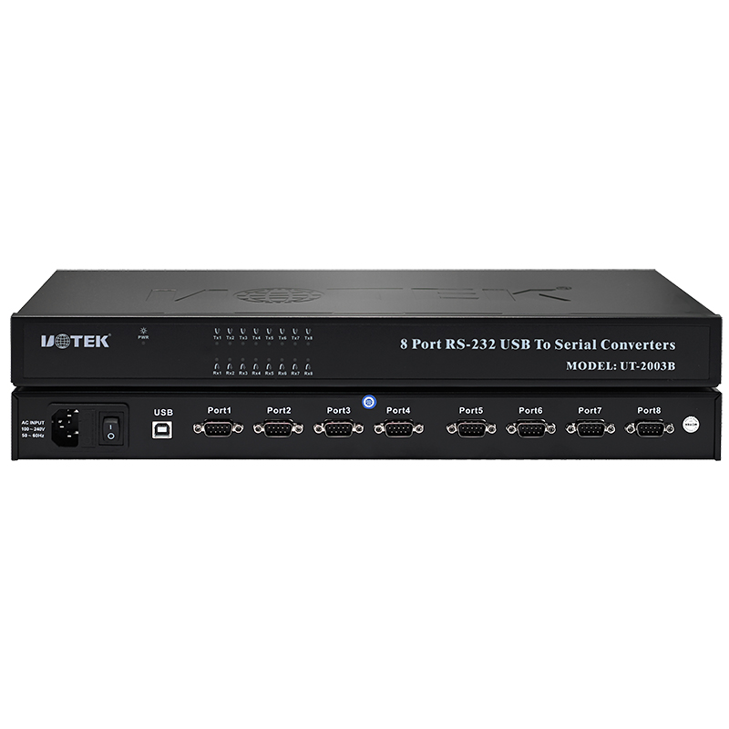 UT-2003B is a universal USB to RS-232 converter without external power. It complies with USB, RS-232 standards; it converts single side USB signal to RS-232 of UART; RS-232 adopts DB9 male connector. This converter is with built-in zero delay auto receiving and transmitting conversion, and unique I/O circuit auto control data flow direction, plug & play. It is compatible with current communication software and hardware.
