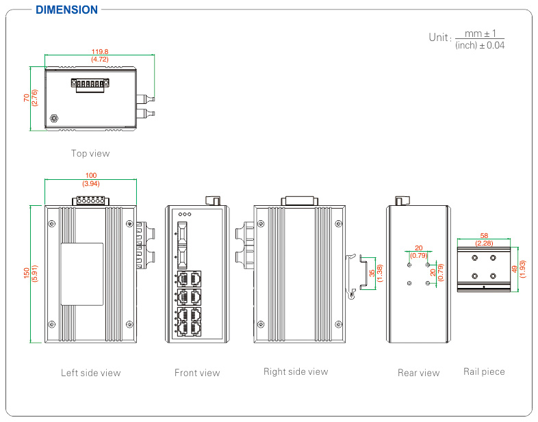 UT-60208F series are unmanaged industrial Ethernet switches. It supports up to 10 ports, which included 2 Gigabit fiber ports. This switch is low power consumption; the fanless design prevents it from noise interference; the operating temperature range is from -40~85°C. These make it provides safe and reliable solution for industrial automation, intelligent transportation, video monitoring, and other industrial application networking.