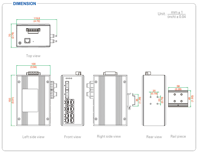 RJ45 interface: 10/100Base-T(X), auto MDI/MDI-X