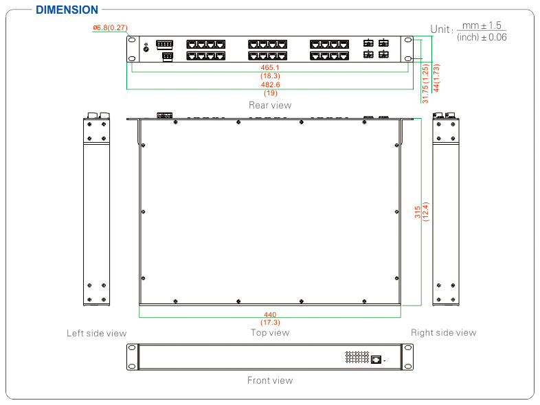 RJ45 ports: 10/100/1000Base-T(X),auto MDI/MDI-X