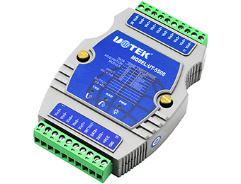 UT-5508 is a remote data acquisition module, which can be remotely controlled through a series of instructions in UTBUS protocol. The module and upper computer communicate through RS-485 serial BUS in the form of ASCII code data. The baud rate is set by the software, and the maximum transmission rate can reach 115.2K.UT-5508 also supports Modbus RTU protocol.