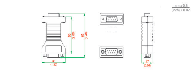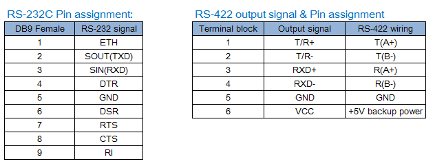 ● RS-232 DB9 female connector, RS-485 DB9 male connector, with terminal block