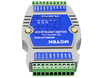 UT-5202 is a hub special designed for RS-485 BUS under complicated electromagnetic field. The transmission rate for this hub is as high as 115.2KBPS. To ensure the safety and reliability of the data communication, RS-485 port adopts optoelectronic isolation technology to prevent from lightning and surge; the built-in optoelectronic isolator and 600W surge protection circuit can provide 2,500V isolated voltage for lightning and ESD protection. Meanwhile, it adopts external switch power, prevents from common ground interference; it is quite good for outdoor application.
