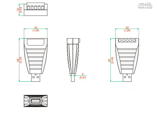 ● Dimension: 62mmx33mmx16mm