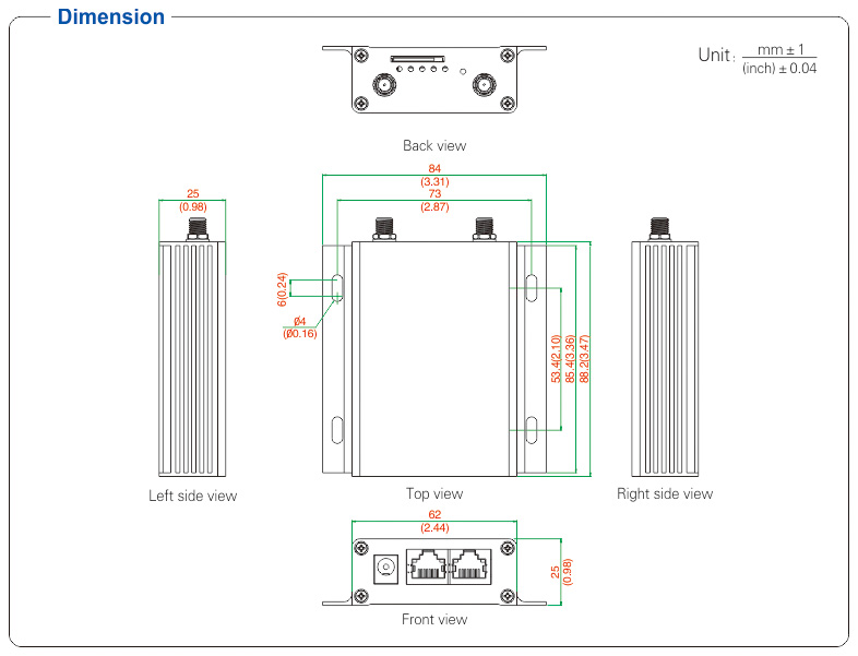 ● Supports 4G network, provides with 1 WAN & 1 LAN port