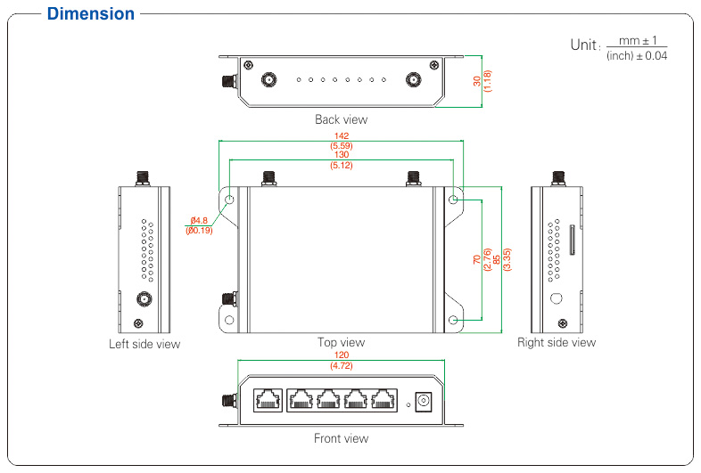 ● Supports 4G network, provides with 1 WAN & 4 LAN ports