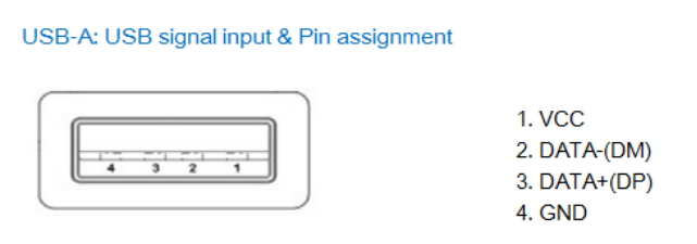 ● USB signal: VCC, DATA-, DATA+, GND, FG