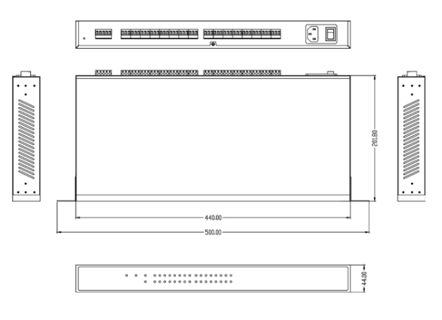 UT-1216 is a RS-485 bus splitting HUB with internal quad-core, non-halt design, designed to address the requirements of RS-485 systems in complex electromagnetic field environments. The product supports transmission rate up to 115.2Kbps. To ensure safe and reliable data communication, the RS-485 interface side adopts opto-isolation technology to prevent lightning surge from being introduced into the converter and equipment. At the same time can effectively prevent lightning strikes and common ground interference, power supply using external switching power supply, safe and reliable, very suitable for outdoor engineering applications.