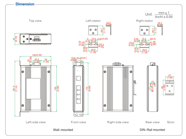 UT-6405G is a 5-port full Gigabit unmanaged Ethernet switch, providing 5 1000Base-T Ethernet port, which supports -40~85°C operating temperature and good EMC performance, and also supports industrial standard DIN-rail mounting and wall mounting to ensure normal operation in harsh environment, it is easy to install and apply on any industrial network.