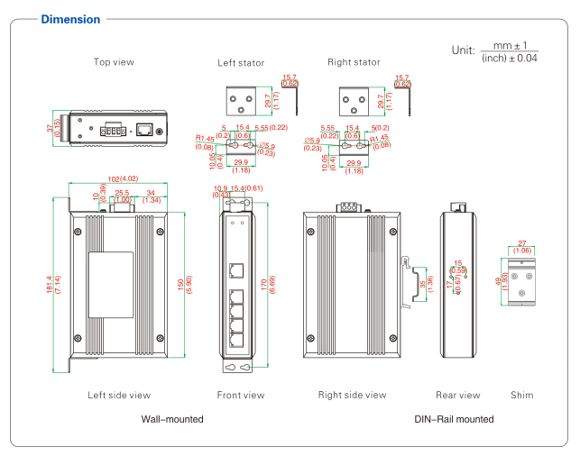 RJ45 interface: 10/100Base-T(X), MDI/MDI-X adaptive
