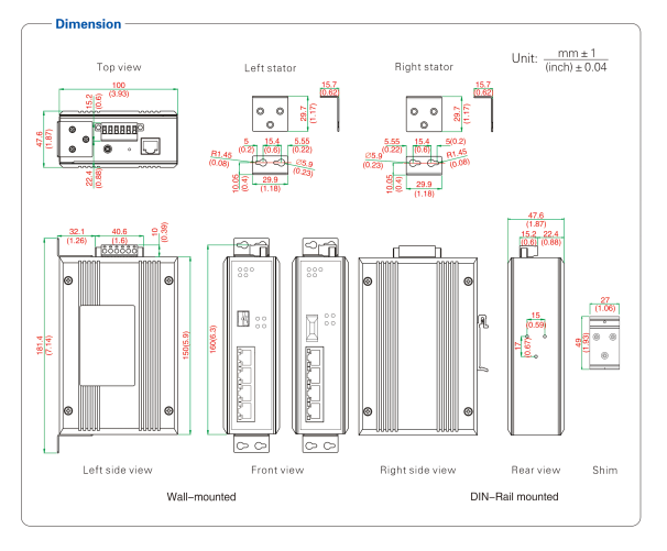 Dimension (W x H x D): 150mm x 47.6mm x 100mm