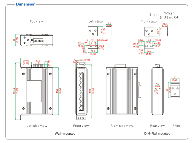 UT-6408G is a 8-port full Gigabit unmanaged Ethernet switch, providing 8 1000Base-T Ethernet port, which supports -40~85°C operating temperature and good EMC EMC performance, and also supports industry standard DIN-rail mounting and wall mounting to ensure normal operation in harsh environment, it is easy to install and apply on any industrial network.