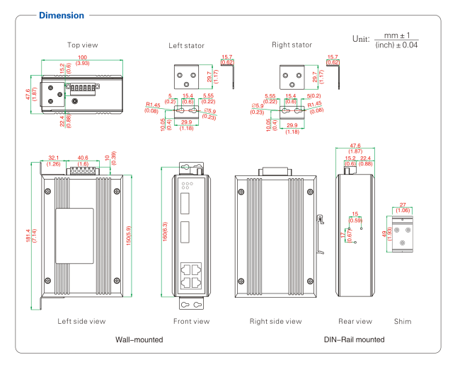Voltage input: 12/24/48VDC(10.8~52.8VDC), Dual power redundant input