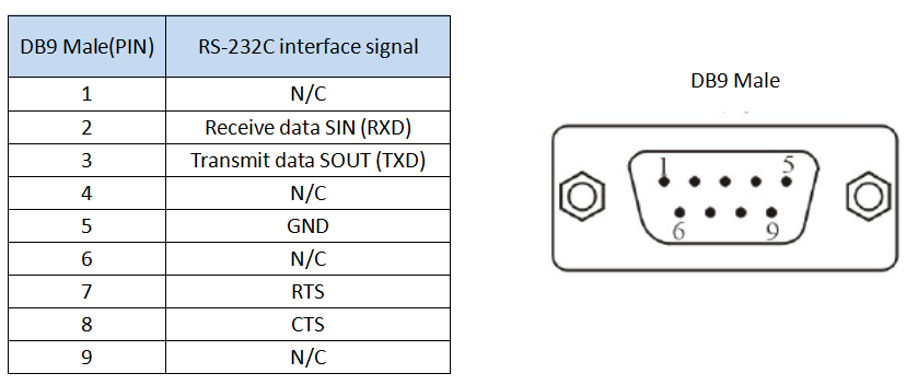 ● Signal: RS-232: RXD, TXD, GND, RTS, CTS