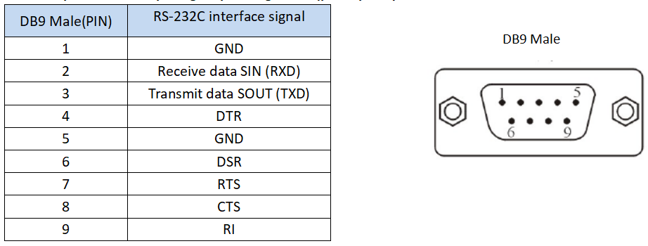 ● Signal: RS-232:DCD, RXD, TXD, DTR, GND, DSR, RTS, CTS, RI