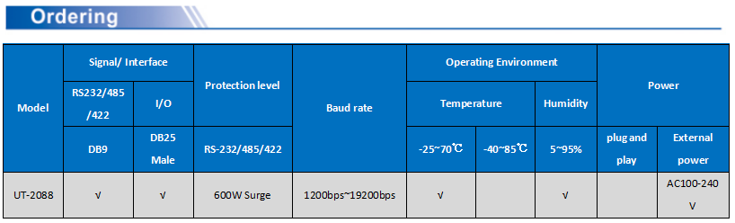● Operating environment: -25~ 70°C, relative humidity 5~95%
