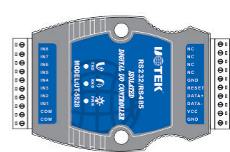 The UT-5528 opto-isolated data parallel input I/O controller is an 8-bit, 8-channel isolated switching input. All switching inputs are simply COM and IN1 shorted, or COM and IN1-8 can be connected.