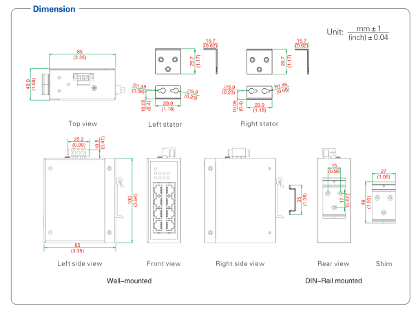 ● Voltage input: 12/24/48VDC (10.8~52.8VDC), support reverse connection protection