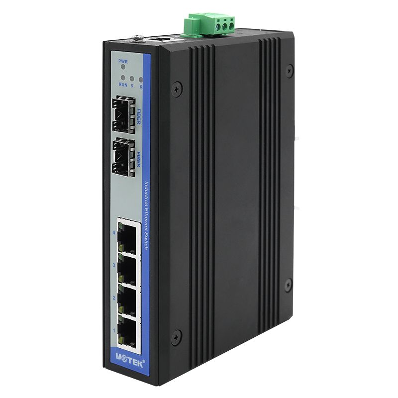 UT-6406GM series is a high-performance, cost-effective full-gigabit managed industrial Ethernet switch. In order to meet the different requirements of industrial applications, this series adopts a modular design, up to 2 Gigabit optical fiber ports and 4 Gigabit Ethernet electrical ports, which enhances the flexibility of network expansion. This series of switches supports port mirroring, VLAN, IGMP-Snooping, QoS, STP/RSTP/MSTP, ACL access control list and other rich Layer 2 software features and a series of practical management methods, such as Console, Telnet, Web, SNMP, etc. It can better provide safe and reliable solutions for building large-scale local area networks in industrial applications such as factory automation, intelligent transportation, and video surveillance.