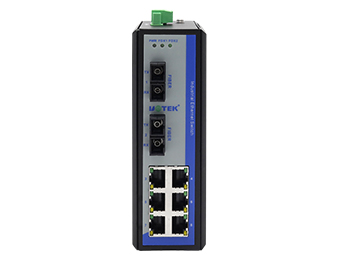 UT-62206C is an 8-port 100M unmanaged Ethernet switch. It provided 6 10/100Base-T(X) copper ports and 2 100Base-FX fiber ports, plug & play. It is used for data communication between 100Base-T(X) twisted pair and 100Base-FX fiber cable, which is suitable for intelligent residential district or fiber to desktop connection. It extends the transmission distance from 100M(twisted pair) to 100KM or above, and it realize the data communication among in server, repeater, hub, terminals.