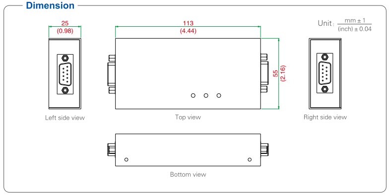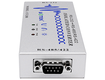 UT-208 is a converter with optoelectronic isolation. It complies with RS-232C, RS422, and RS-485 standards; it converts single side RS-232 signal to a balanced differential RS-422 or RS-485 signal. The built-in optoelectronic isolator can provide as high as 2,500Vrm isolated voltage; the fast instant voltage restraint is designed to protect RS-422/RS-485 interface; it adopts advanced TVS (TRANSIENT VOLTAGE SUPPRESSOR) instant voltage restraint; normally, TVS tube is in high impedance state; when both sides of TVS tube suffer from high power impact in a sudden, the voltage restraint will fast lower the impedance from both sides, and absorb in big current; with this, the voltage on both sides are fixed at presupposed value, protects the component of circuit from damage. This voltage restraint provides 600W each wire with lightning and ESD protection, and surge voltage and instant overvoltage protection on circuit which causing by all reasons; the tiny interelectrode capacitance ensures high speed transmission for RS-422/485 ports. RS-232 port connects with RS-232C standard port by DB9 female connector; RS-422/RS-485 adopts DB9 male as connector.