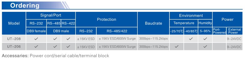 ● Standards: RS-232, RS-485, RS-422 TIA/EIA