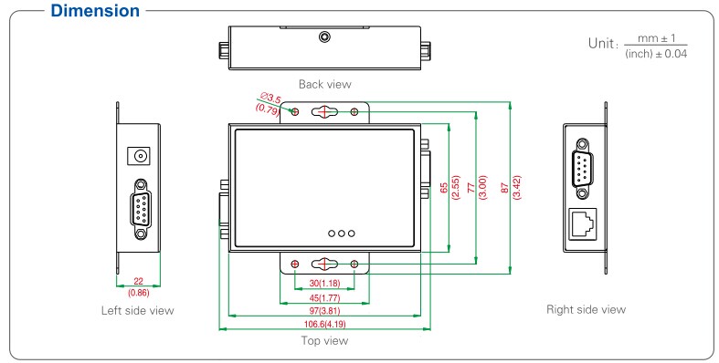 ● Allows connecting 128 sets RS-485 or RS-422 device