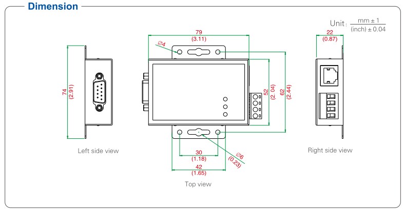 ● Allows connecting 32 sets RS-485 or RS-422 device