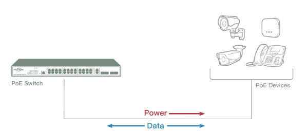 A POE (power over ethernet) switch is an ethernet-based switch that allows data transmission and power supply to other connected devices. A POE switch works by receiving a physical signal sent to the connected devices via ethernet cables in data packets. The data packets, in turn, are directed to their final location by a destination address which leads them to their corresponding port where they instruct a device to carry out the desired task.